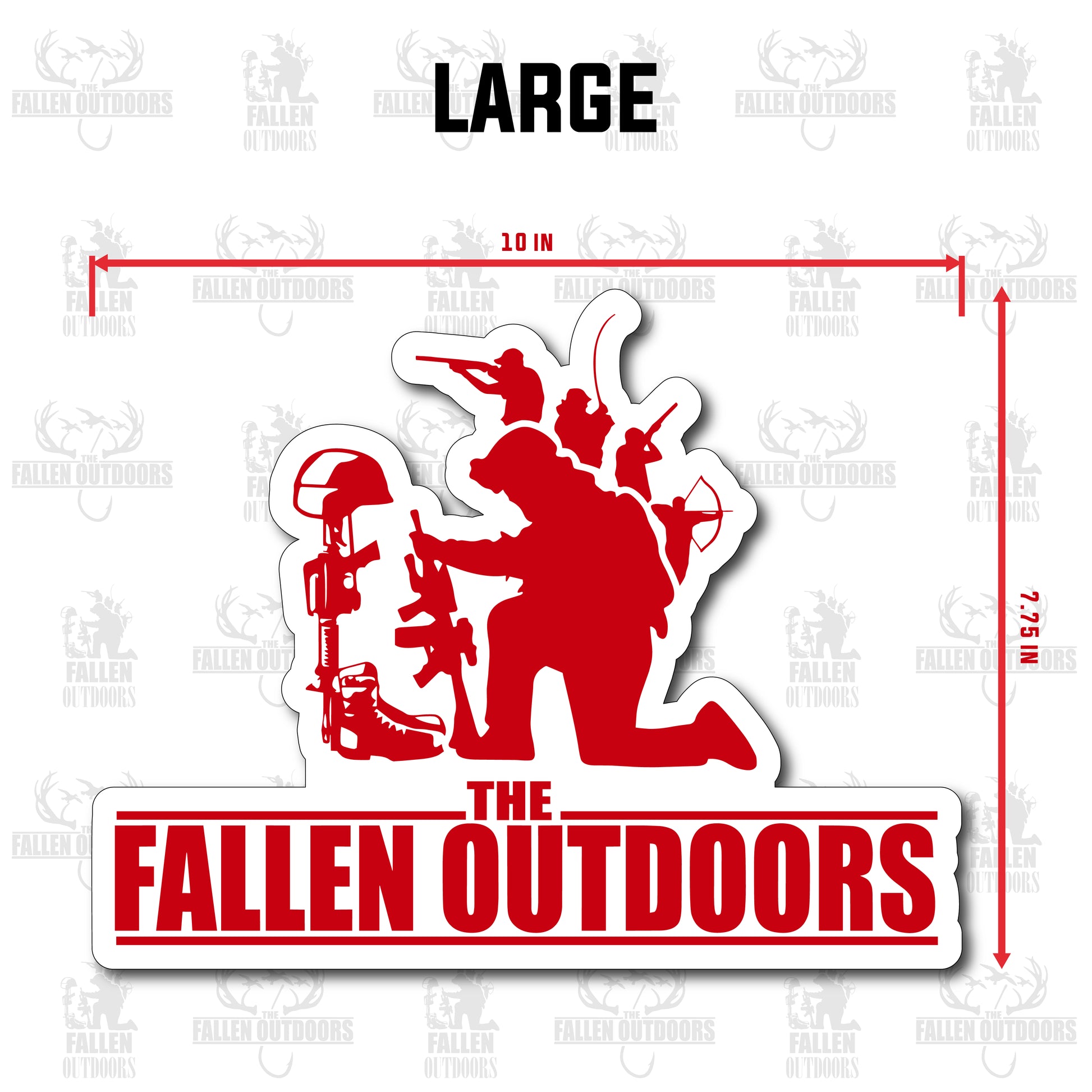 Printed vinyl stickers are easy to apply and are a great way to rep The Fallen Outdoors! These are great for your boat, vehicle, windows, and more! The Classic Kneeling Logo is available in 3 sizes and 6 colors. All stickers have UV protection for long lasting durability.