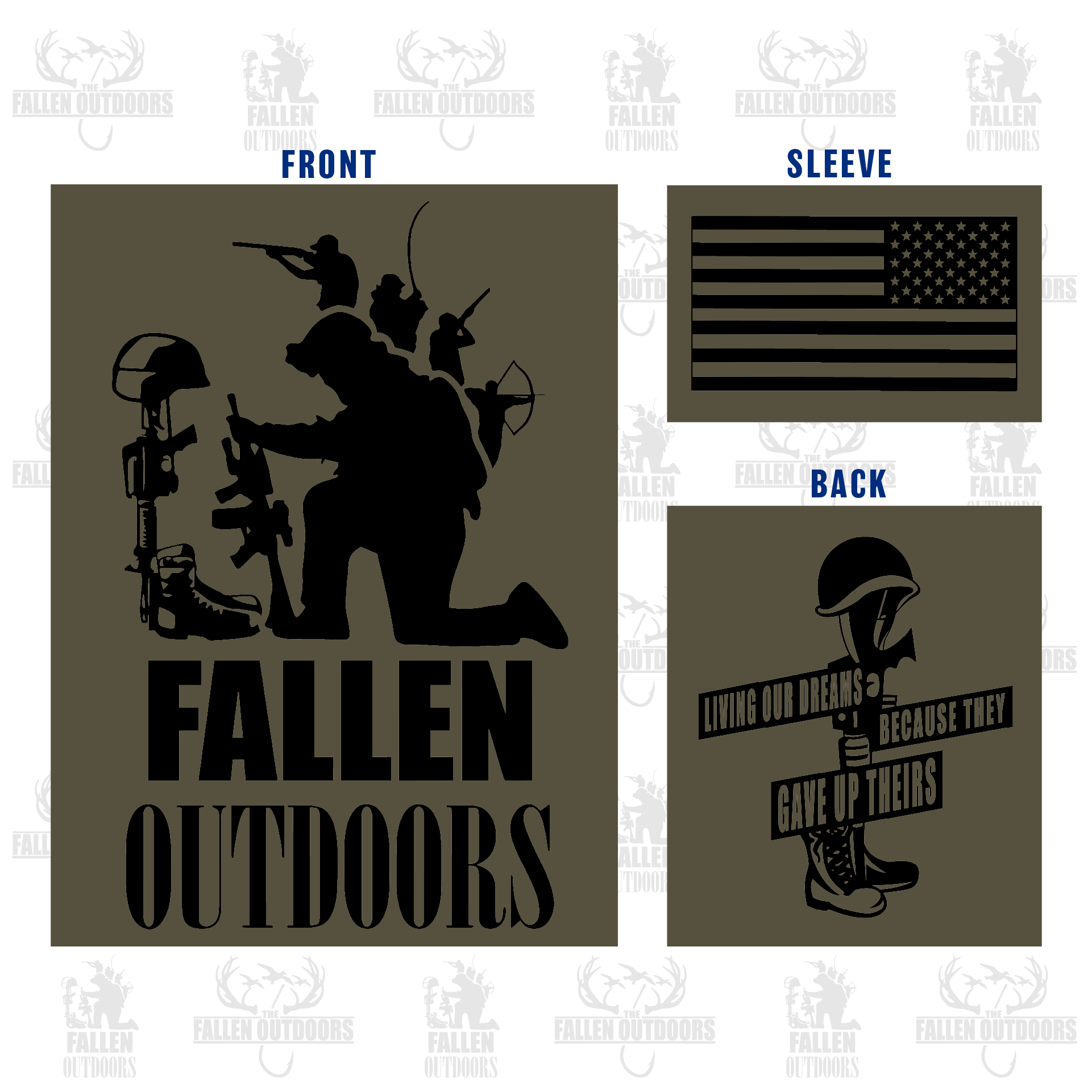 This performance hoodie includes the TFO Classic Kneeling logo on the front, an American Flag sleeve print, and the iconic Battle Cross to honor the fallen. It is a performance style, polyester material.