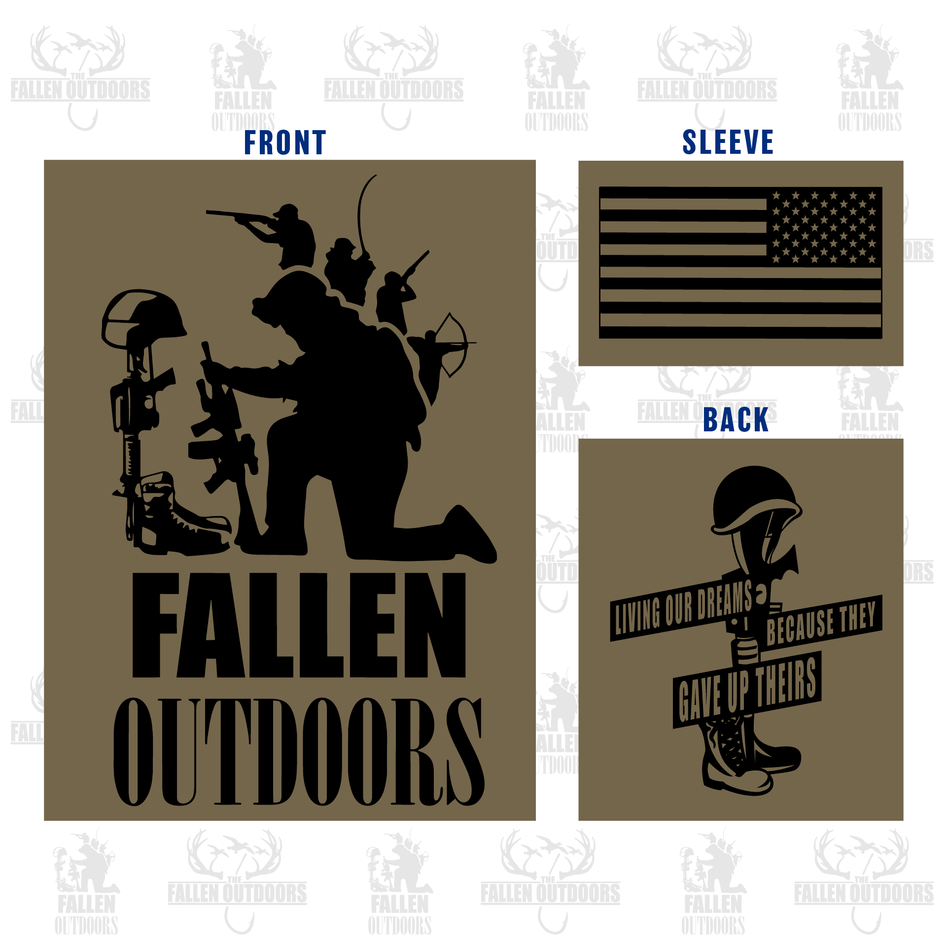 This is best selling hoodie. It includes the TFO Classic Kneeling logo along with the iconic Battle Cross to honor the fallen and an American Flag sleeve print. It is a performance style, polyester material.