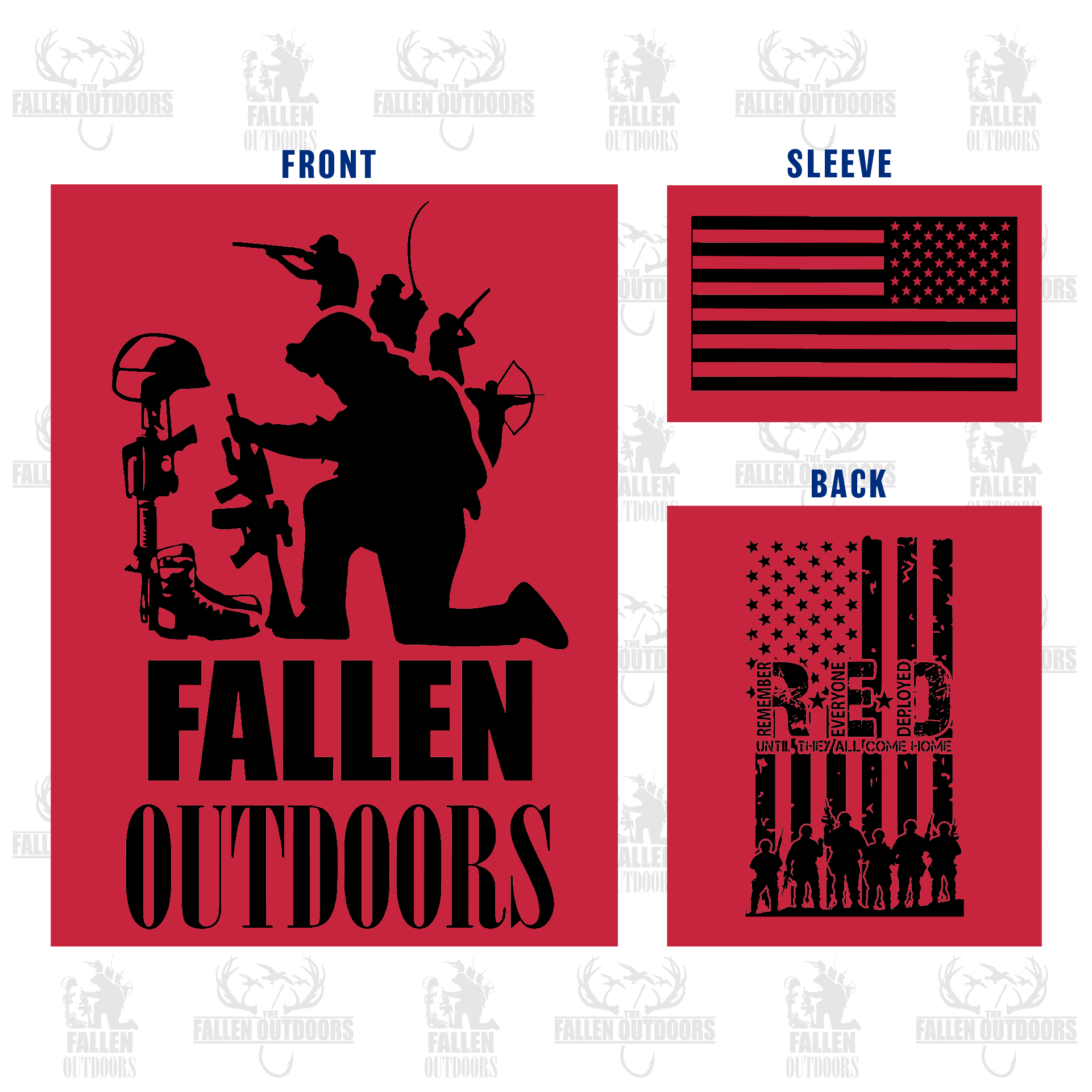 Our Remember Everyone Deployed t-shirt features our classic TFO Kneeling logo on the front, a tribute R.E.D design on the back, and the American Flag sleeve print.